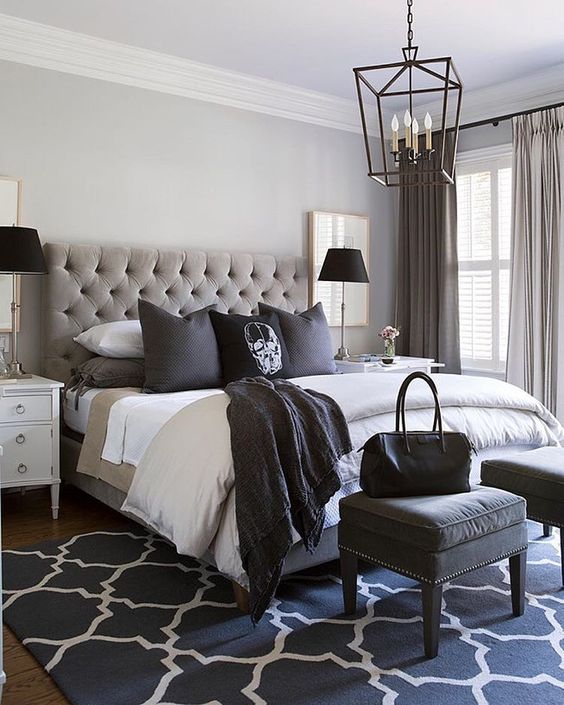 The calming and sedating psychological properties of the colour blue make it a no-brainer when it comes to bedroom décor choices. A single navy or teal wall not only adds an audacious focal point to the room, but (combined with deeper shades of blue and grey bedroom accessories) can make for a trendy space within the home. Geometric wallpapers and floor rugs are all the rage and are a go to for interior gurus as they can easily be replaced when trends come and go.